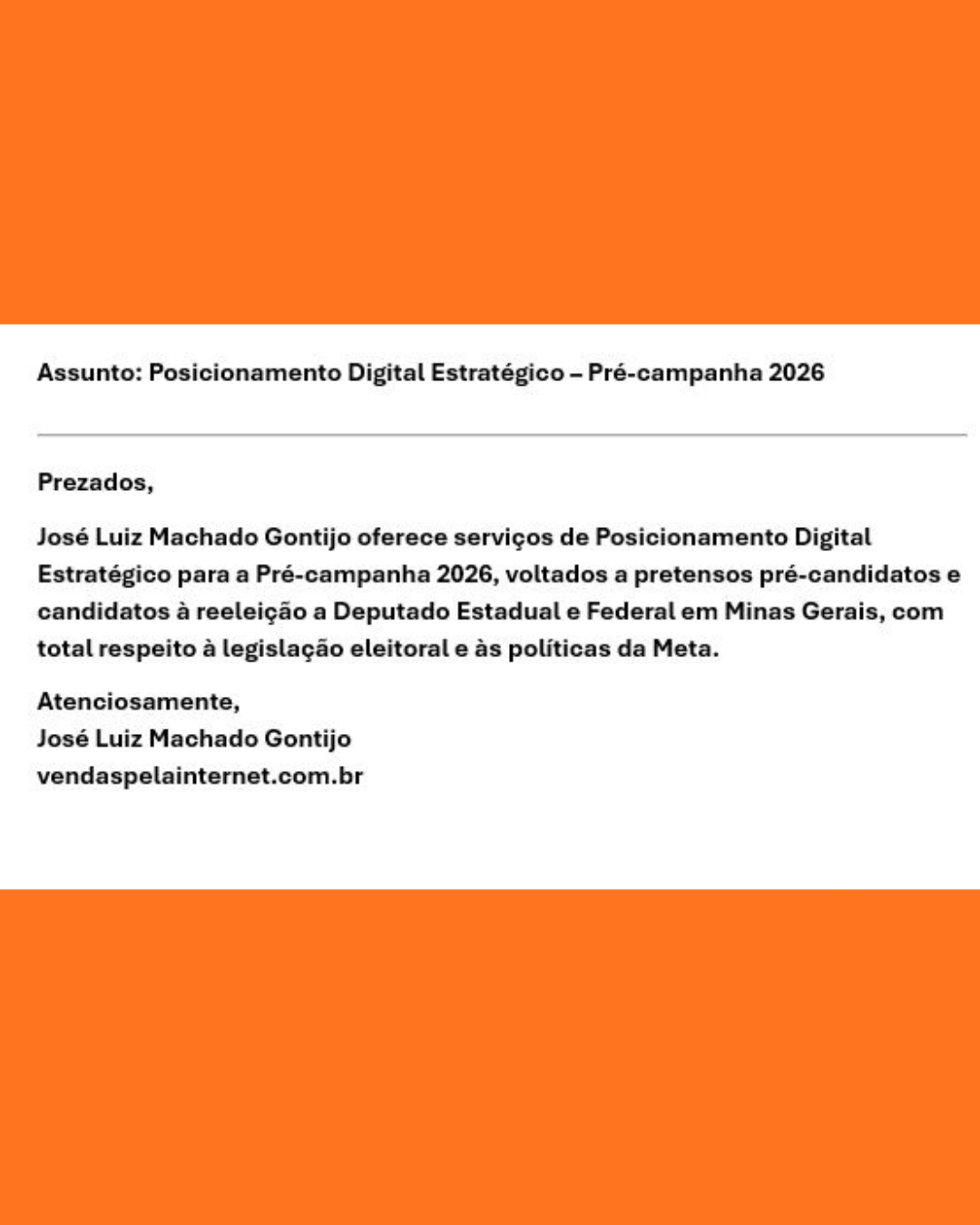 José Luiz Machado Gontijo, desenvolve sites institucionais, landing pages e realiza a gestão estratégica de redes sociais, sempre em conformidade com a legislação eleitoral.